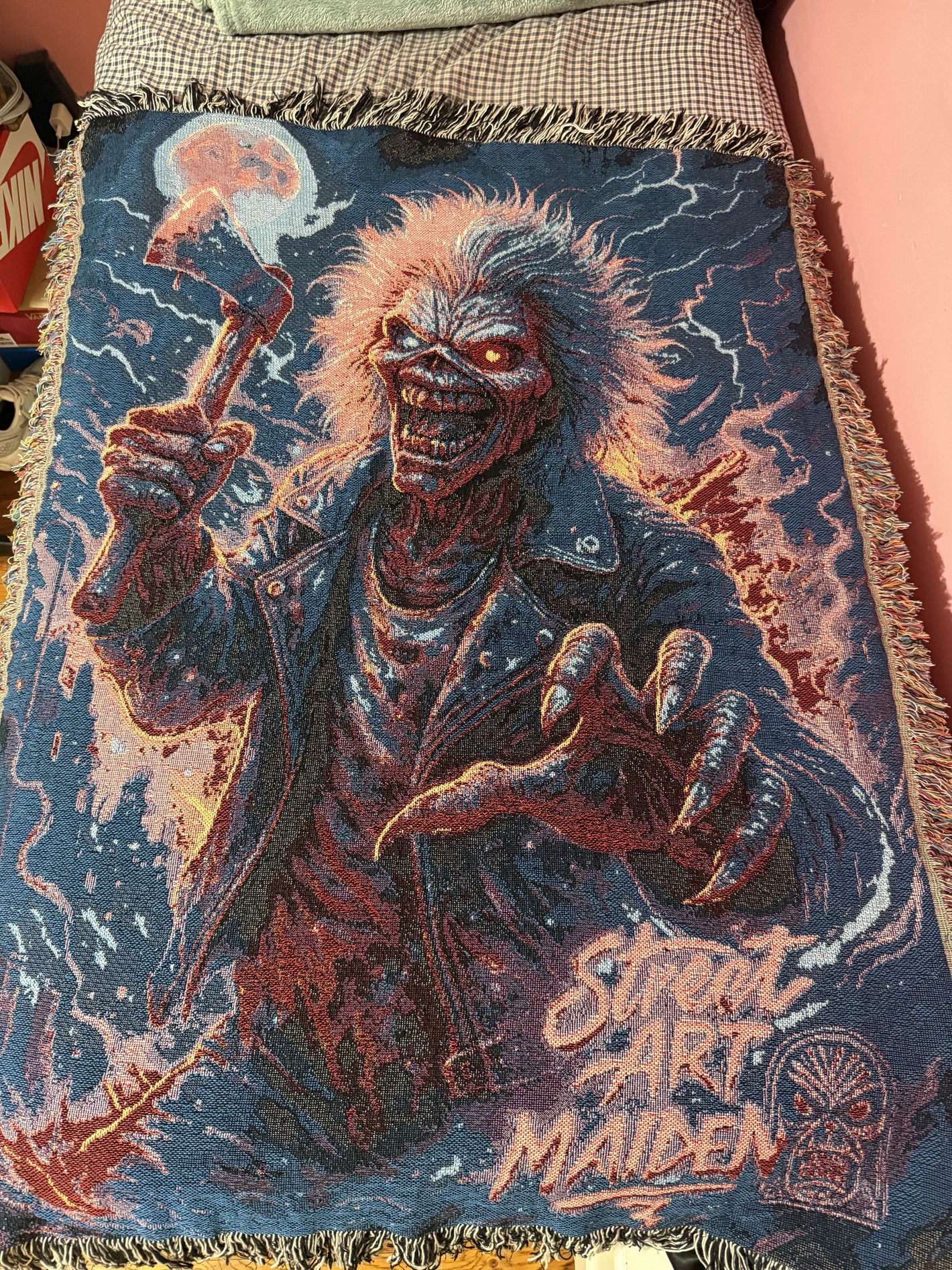 This blanket is EVERYTHING. Soft and dramatic. It’s now a permanent part of my reading nook. The iron maiden design adds just the right amount of madness. I seriously love it so much I might need a second one